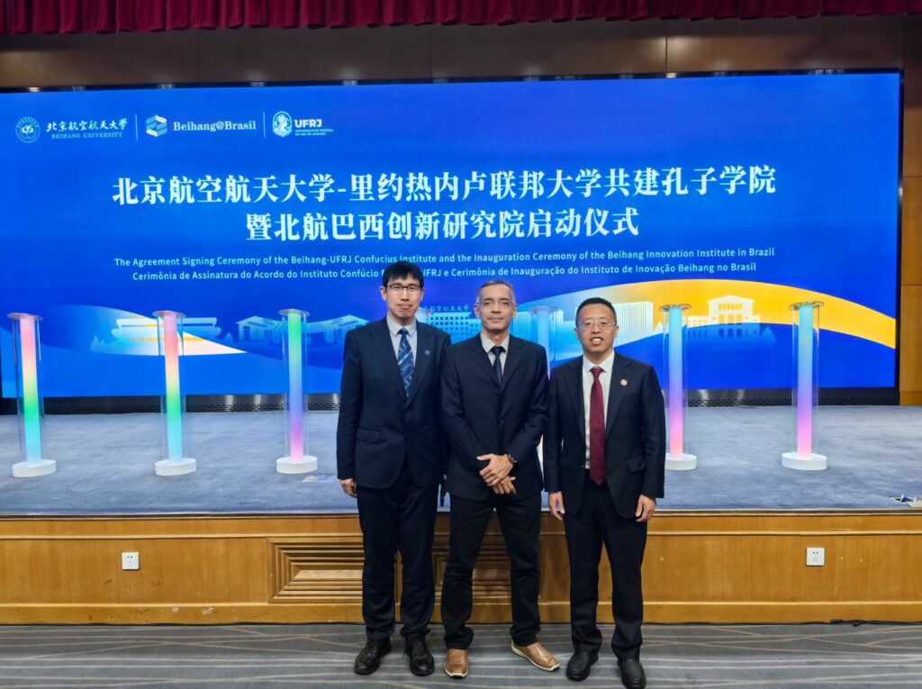 Durante a semana de 11 a 16 de maio de 2025 realizamos visita à Universidade de Beihang (China), onde mantivemos colaboração científica com membros do grupo de pesquisa liderado pelo professor Lisheng Geng sobre correlações femtoscópicas de pares de mésons pesados. Ademais, também tivemos a oportunidade de participar como convidado da cerimônia de lançamento do Projeto do Beihang Brazil Center e do Beihang Brazil Innovation Institute.